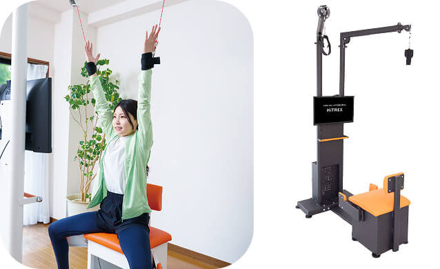 HiTREXは、人間の運動機能にとって最も大切な「骨盤」(お尻・股関節) と「背中」(腰・肩甲骨) の筋肉を鍛え、その働きを高めることができるトレーニングマシンです。継続してご利用いただくことで、ご利用者の運動機能とADLの改善を実現します。