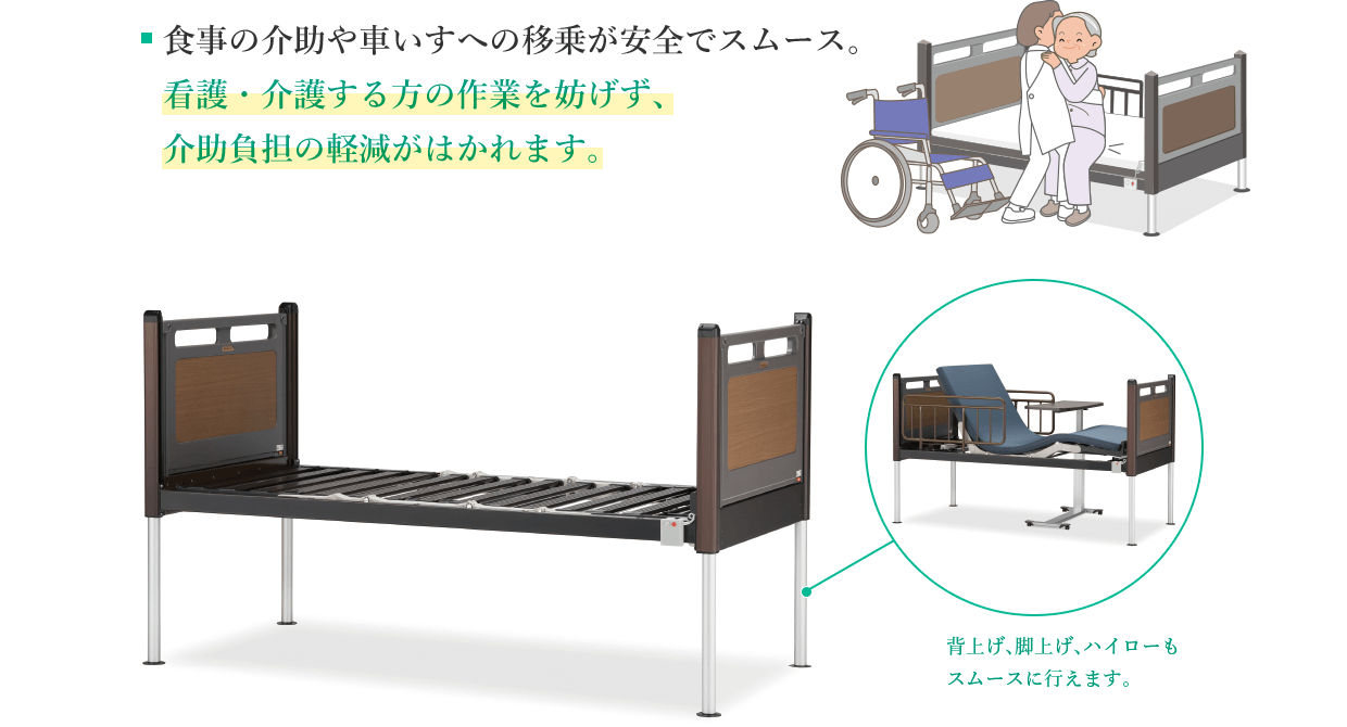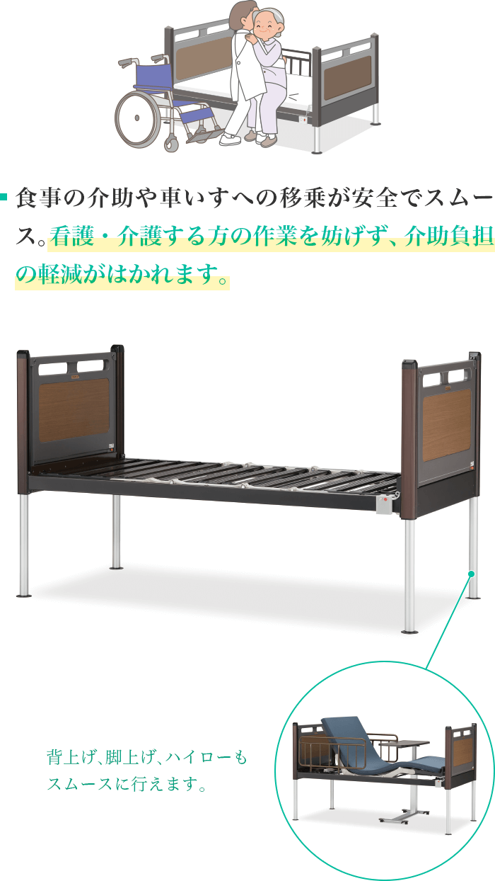 背上げ、脚上げ、ハイローもスムーズに行えます。