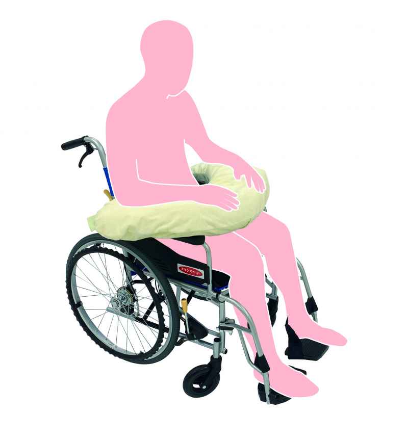 ●長細い形状のクッションは、ズレ防止のため身体の下に敷き込むシート付き