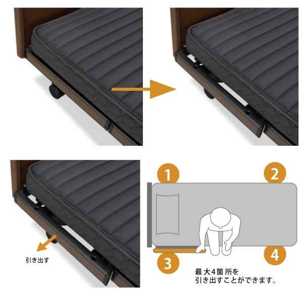 ※ベッド脇からの差し込み式ハイローサイドテーブルは使用できません。
