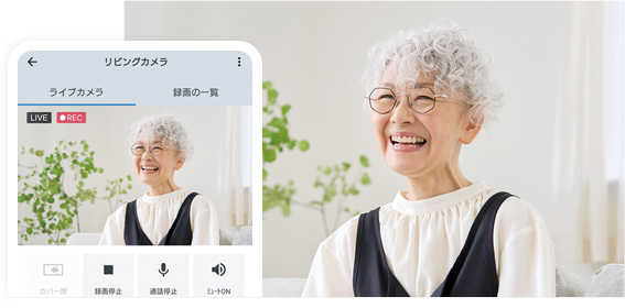 カメラの映像で、「今」の様子を確認。アプリを通して声かけもでき、見守りとコミュニケーションを両立できます。