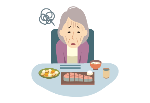 加齢とともに食事の量が減ることで、身体に必要な栄養素が十分に摂れずに栄養不足になる高齢者もたくさんいます。食欲の低下や、食べやすいものだけを選ぶことによる食事内容の偏りなどの理由から栄養不足になっていると考えられます。
